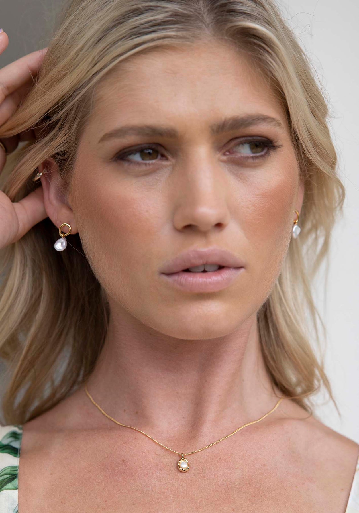 18K gold plated hoop with genuine fresh water pearls hand selected for the unique shape and luster.