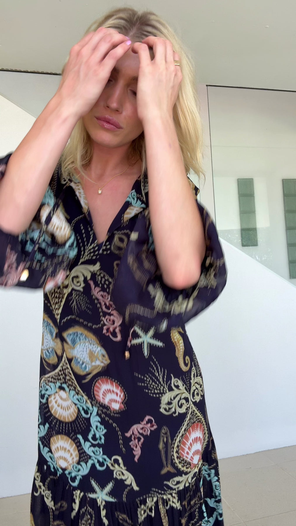 This dress is designed to be worn loose and floaty.  This style is true to size.