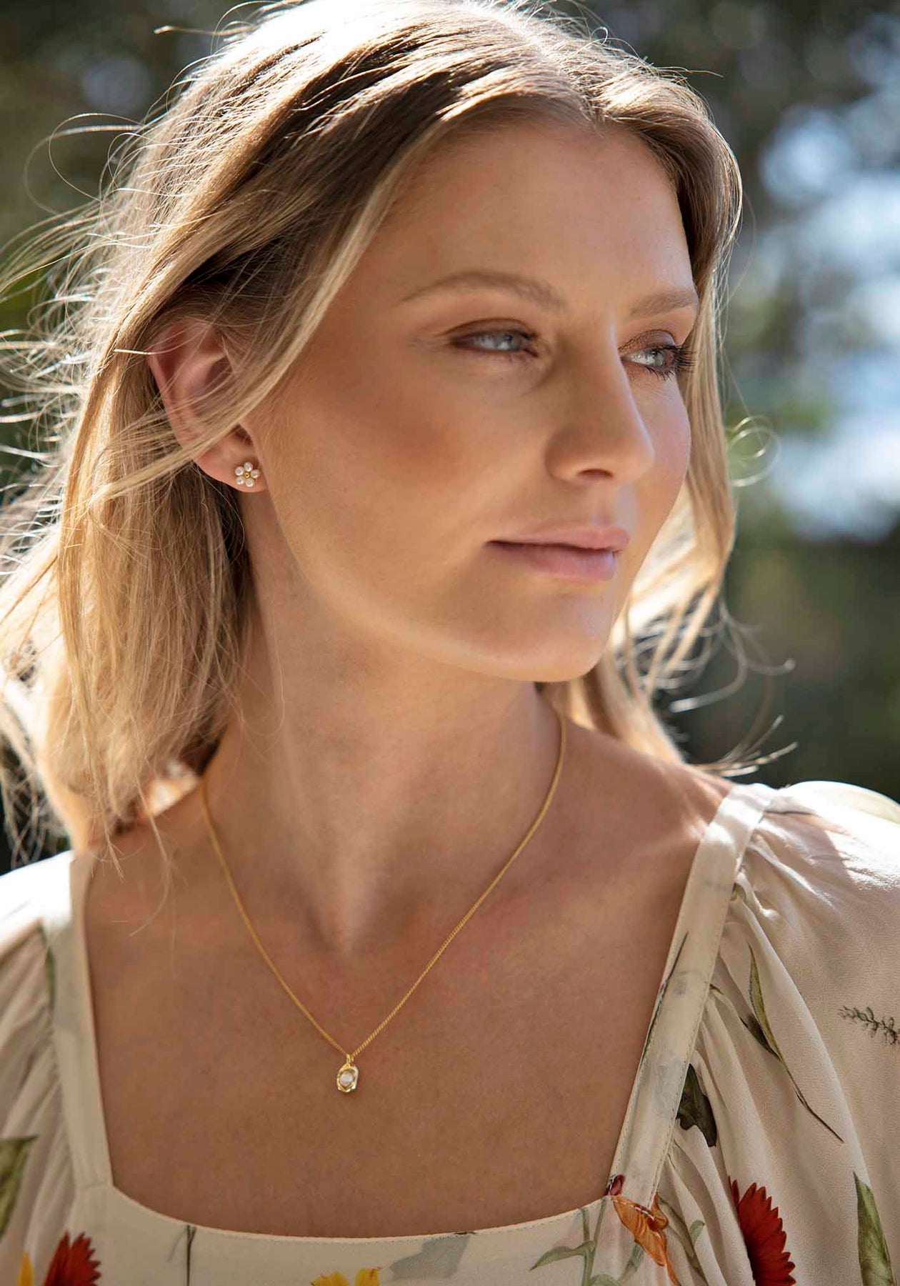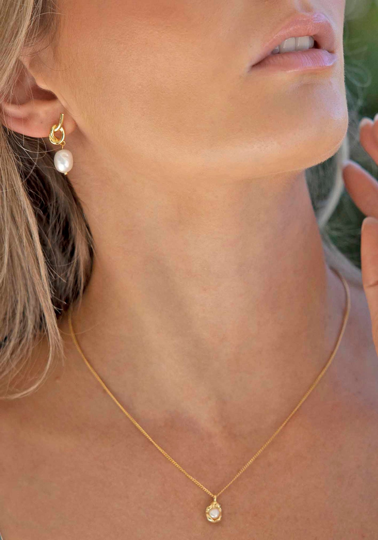 This unique pendant is crafted by hand from 18k gold-plated sterling silver, the Low Tide Pearl Necklace features a unique freshwater pearl encased in irregular gold, creating a distinctive and elegant look. Its fine chain includes an extender for adjustable length, ensuring a perfect fit. Designed as a classic, high-quality piece, making it ideal for everyday wear with lasting beauty.