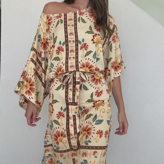 * This style is designed to be worn loose and floaty and is true to size. The attached fabric belt is used to add definition and shape as required. Due to the design, the only measurement to check is your hip measurement. The garment measurement should be slightly bigger than your body measurement. Bust and waist measurements will not impact the fit of this garment.