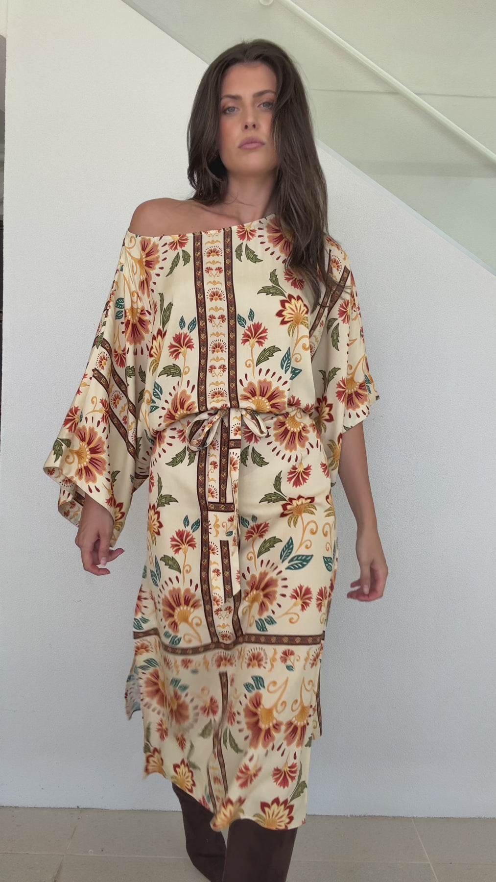 Luminosity Cream Floral Tie Maxi Dress by Three of Something Australia.