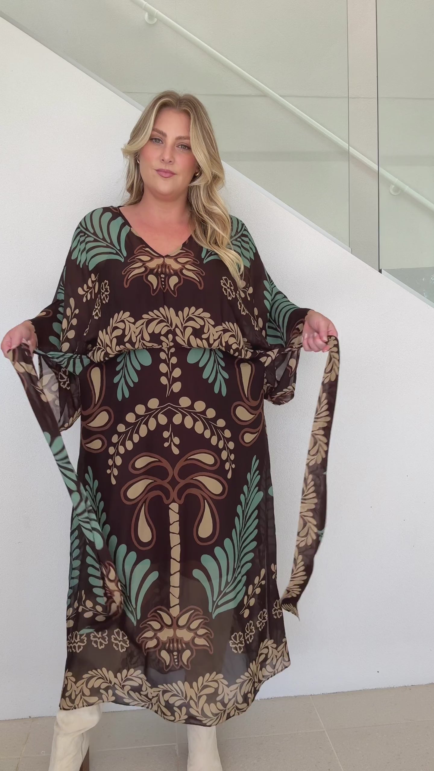 This dress is designed to be worn loose and floaty. You can adjust the waist ties to add definition to the silhouette and change the length. This style is true to size.