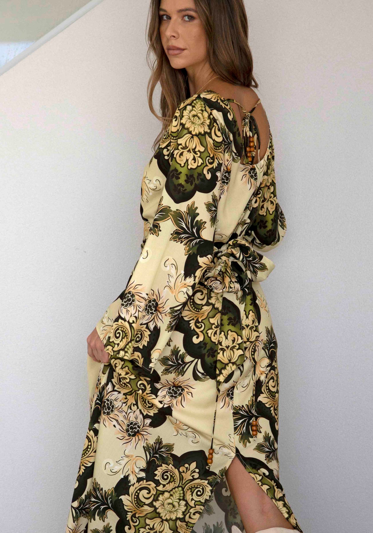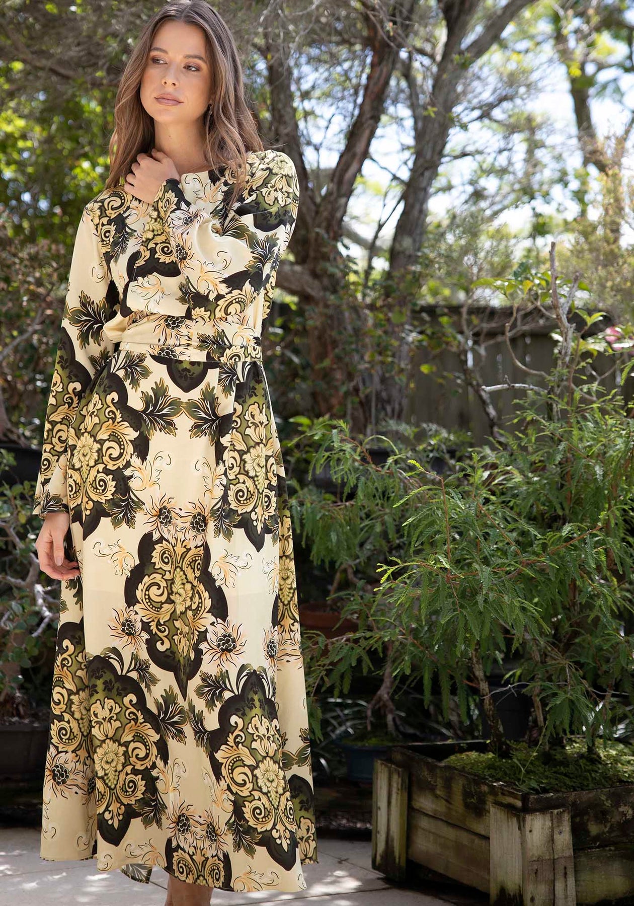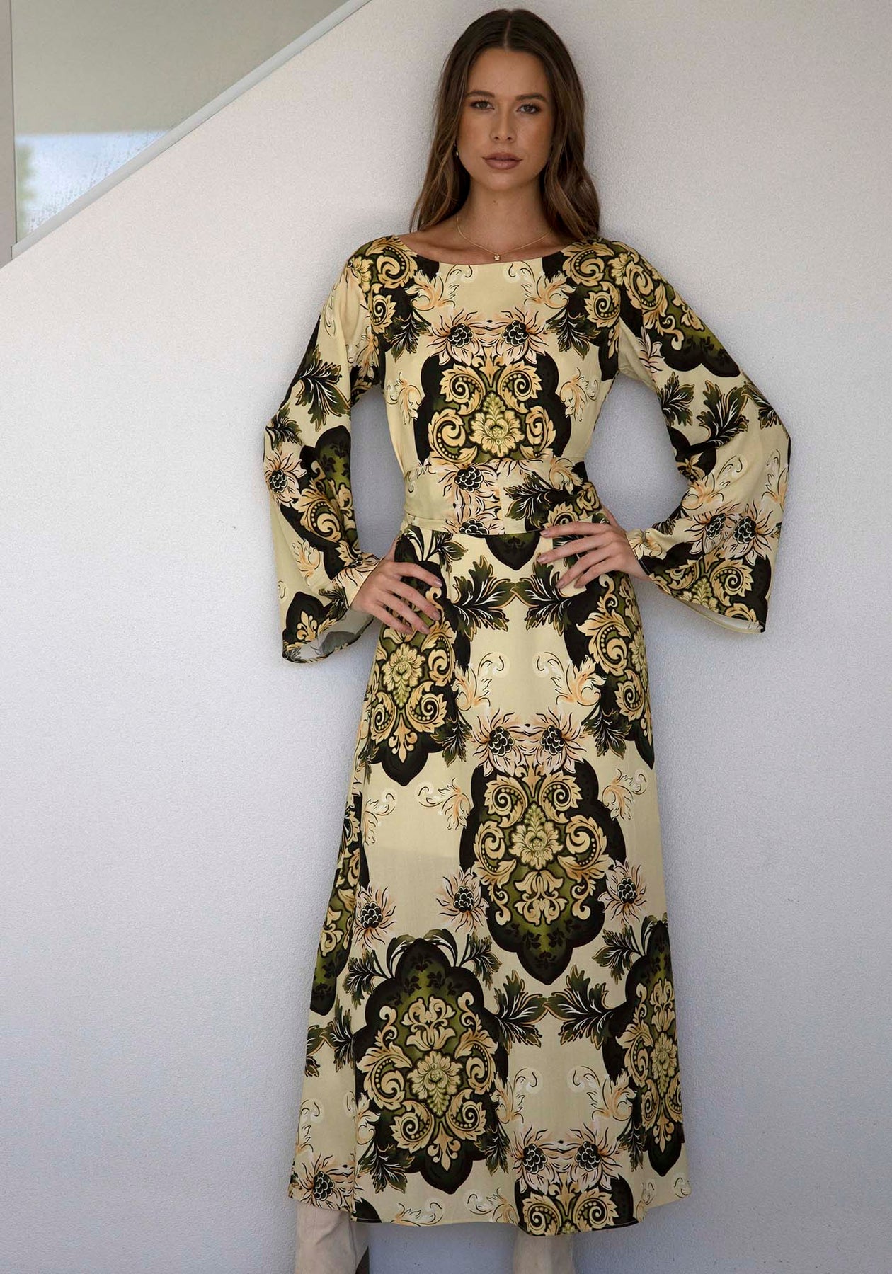 Rhapsody Paisley Cream Bell Sleeve Maxi Dress